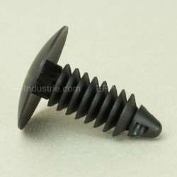 Ce rivet sapin s’installe par une simple pression dans un trou. Les ailettes plastiques présentent se déforment lors de l’insertion pour assurer une bonne tenue du rivet plastique. Cette action va fixer le rivet de manière permanente, et offrira un très bon maintien du matériel ou plaques utilisées. Couramment utilisé dans l’automobile pour la fixation des mousses et revêtement.