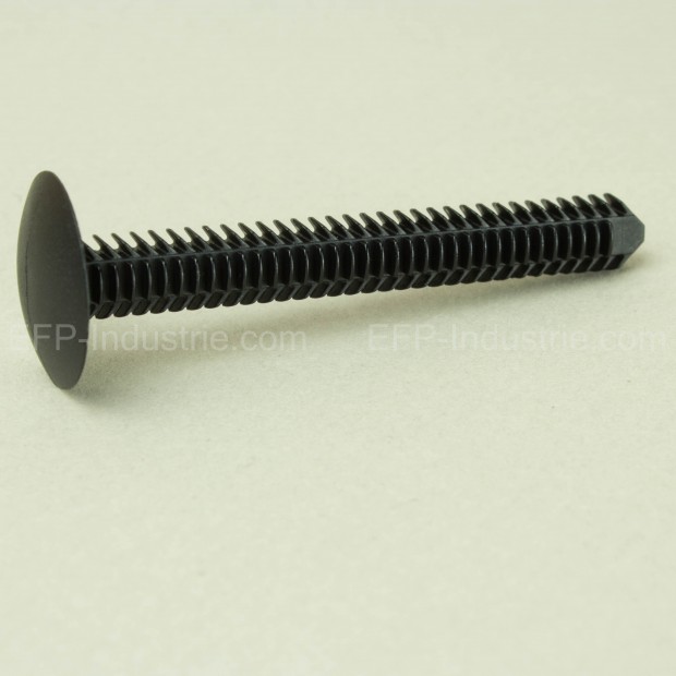 Ce rivet sapin s’installe par une simple pression dans un trou. Les ailettes plastiques présentent se déforment lors de l’insertion pour assurer une bonne tenue du rivet plastique. Cette action va fixer le rivet de manière permanente, et offrira un très bon maintien du matériel ou plaques utilisées. Couramment utilisé dans l’automobile pour la fixation des mousses et revêtement.